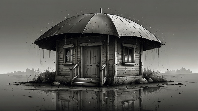 Zwischen großen Versprechen, regnerischen Rohbauten und kreativer Kommunikation offenbart sich eine Welt voller Ironie.