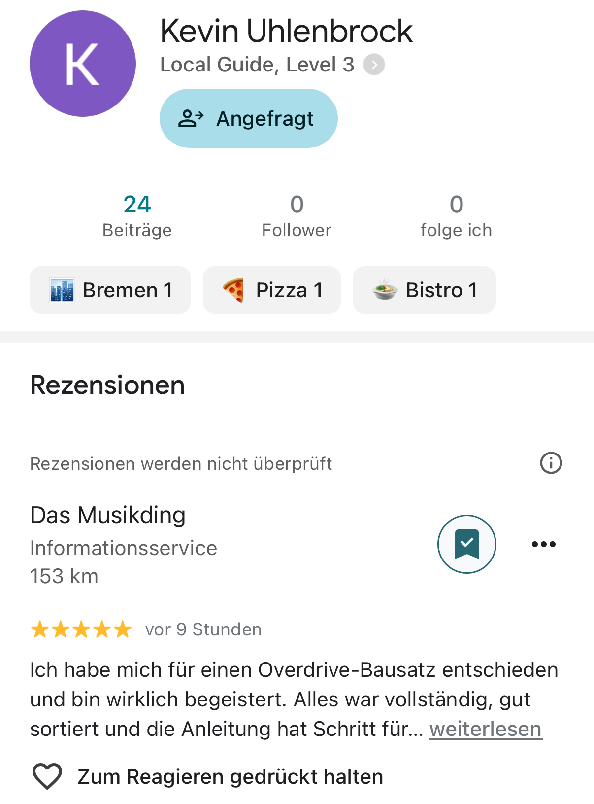 Auffällig dabei: Zwei Nutzer – Matteo Giardini und Kevin Uhlenbrock – bewerteten: